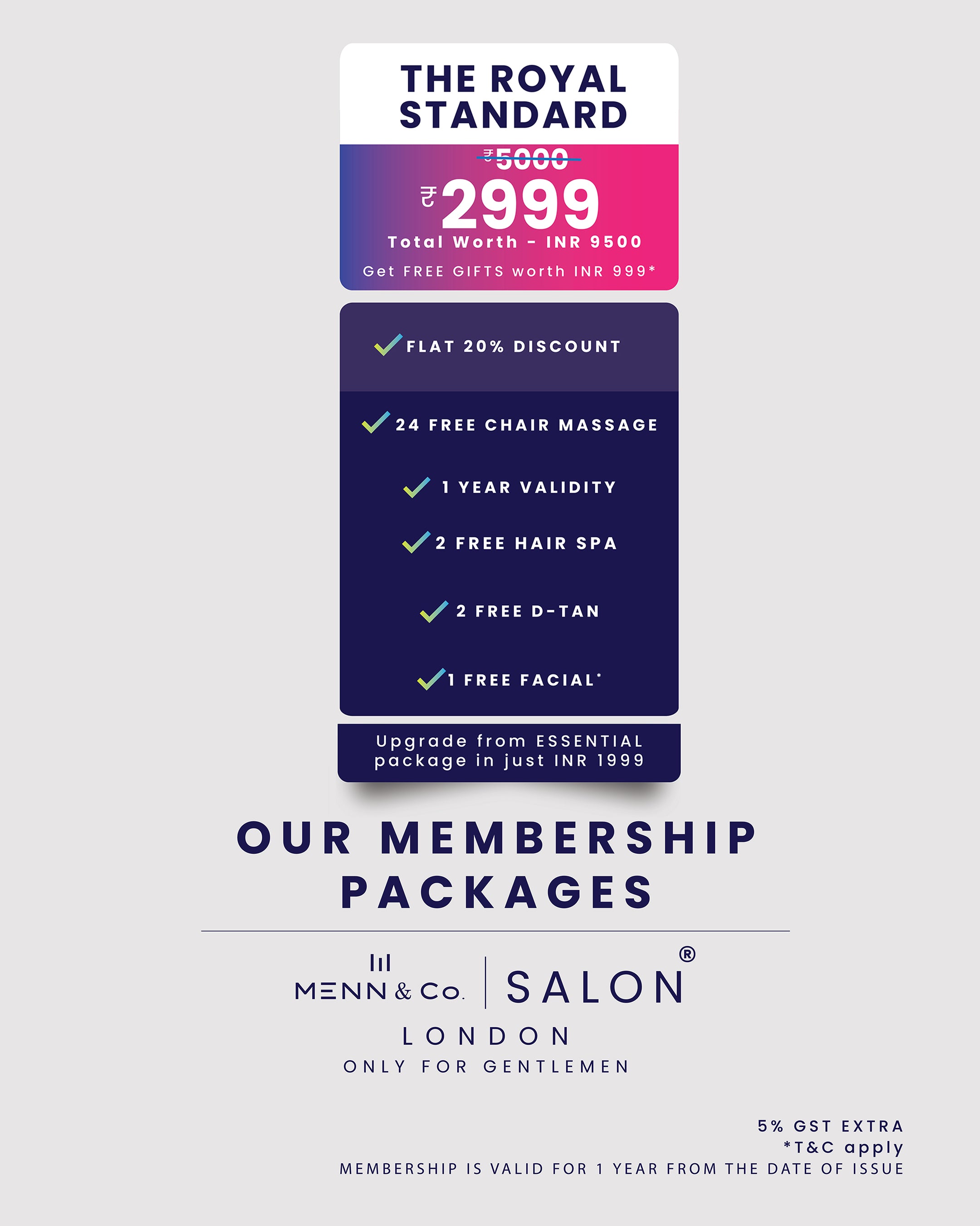 Step up your grooming game with more benefits. Includes 18 free chair massages, 15% discount, 1 free hair spa, and 1 free D-Tan, valid for 1 year.